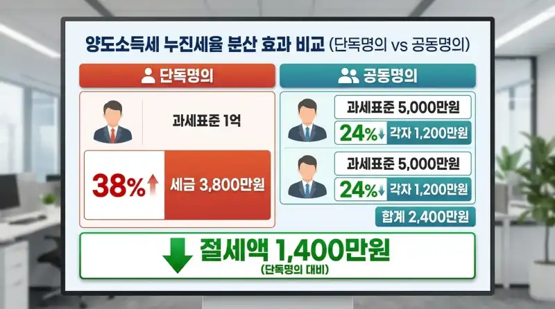 단독 vs 공동명의 누진세율 분산 효과 비교