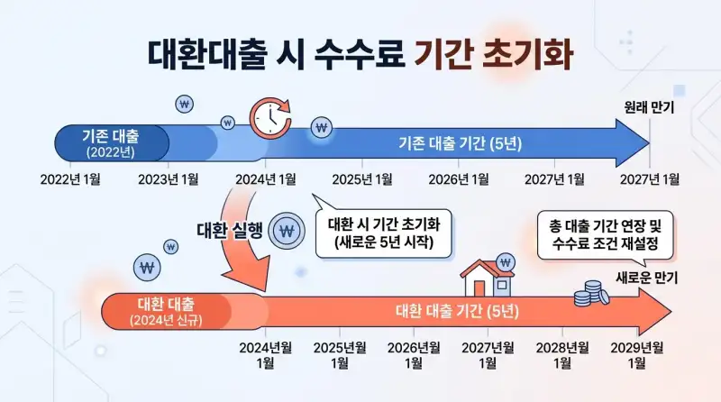 그런데 여기서 많이 헷갈리는 부분이 있어요. “3년 이내”라는 건 대출일로부터 3년이지, 만기일까지 3년이 아니거든요. 30년 만기 대출이든 10년 만기든, 실행일 기준 3년이 넘으면 수수료가 사라집니다. 또 하나, 대환대출을 받으면 새 대출 기준으로 3년이 다시 시작된다는 점도 꼭 기억해야 해요.