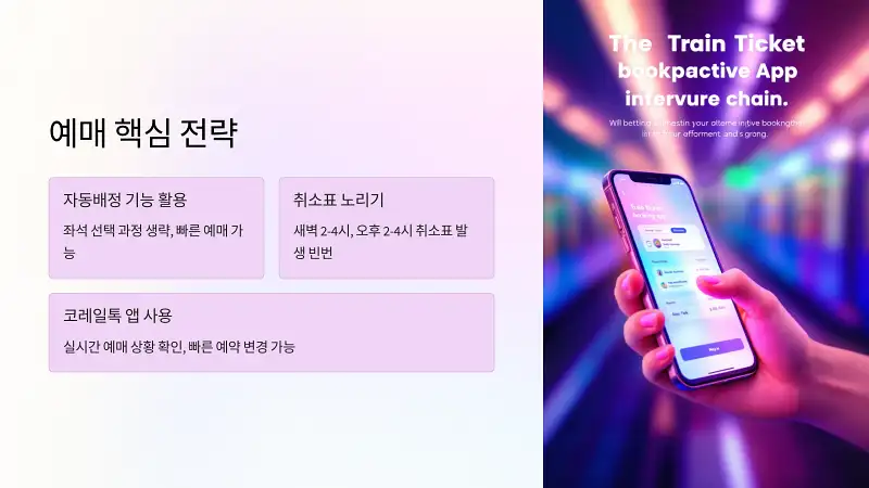 - 특히 KTX나 SRT의 인기 노선에서는 시간을 단축하는 데 큰 도움이 됩니다.