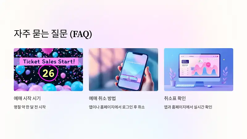 명절 기차표 예매는 준비와 실행력의 싸움입니다. 사전에 철저히 계획하고, 다양한 전략을 활용하여 성공 확률을 높이세요. 특히 코레일톡 앱과 자동배정 기능, 그리고 취소표 전략은 성공을 위한 핵심 요소입니다. 여러분의 기차표 예매 성공을 응원합니다!