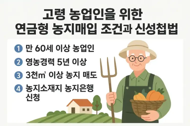고령 농업인을 위한 연금형 농지매입 제도 안내! 신청 조건, 자격 요건, 지급 방식, 실제 사례, 신청 절차까지 모두 정리했습니다. 노후 …